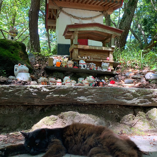 Another visit to the shrine. The cats have switched which one gets to guard from the steps.
